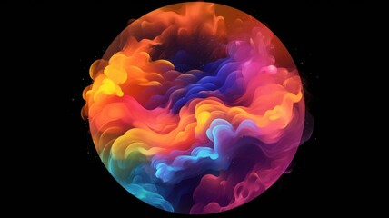 Spectacular cosmic cloud explosion within transparent sphere with black background. Colorful nebula and stars in space concept with purple neon . Digital art for wallpaper and creative design. AIG35.