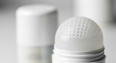 Close-up of roll-on deodorant applicator with precise grid texture.