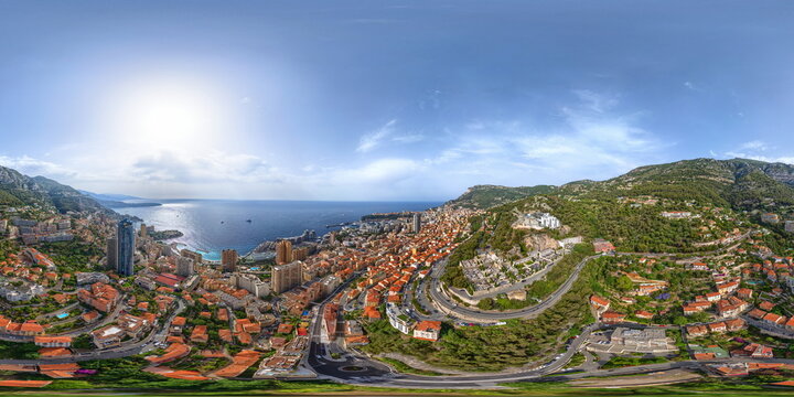 360 Aerial view panorama of Monaco, 360 x 180 spherical panoramic view