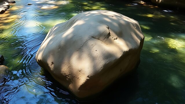 amphibole. A massive weathered boulder resting at the bottom of a clear, deep pool. travel magazines, destination branding, wall prints, designed for travel destination branding, used by teachers.