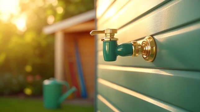 Outdoor plumbing with a garden spigot and tools. Generative AI