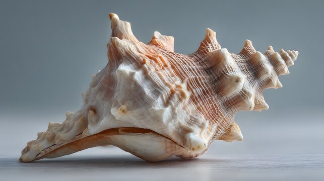 Macro spiral marine shell revealing intricate calcified ridges and creamy nacreous texture