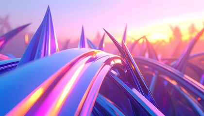 Abstract spiky structures neon sunset