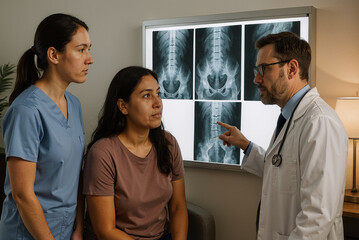 Female Doctor Examining X-Ray of Spine Medical Diagnosis and Healthcare