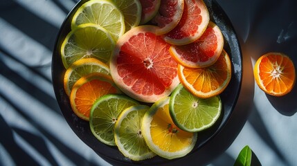 Citrus refreshment with lemon and lime slices on wooden table
