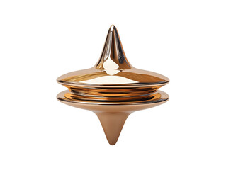 A gleaming metal spinning top in motion, balancing perfectly on a grainy wooden tabletop.