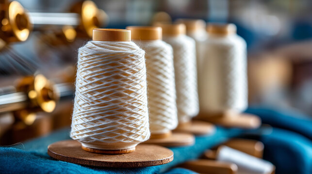 Staple fibers expertly twisted specialized, spinning machines forming, textured threads enhance, comfort breathability clothing, lines textile manufacturing, display industrial production,