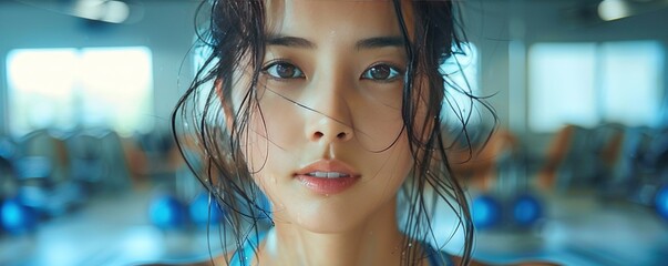 young beautiful girl with spinning hair on the street near the lanterns and a large barrel