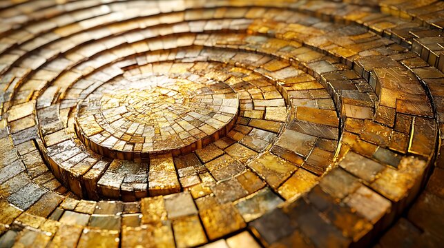 Abstract golden spiral pattern crafted from mosaic tiles shimmering with elegance