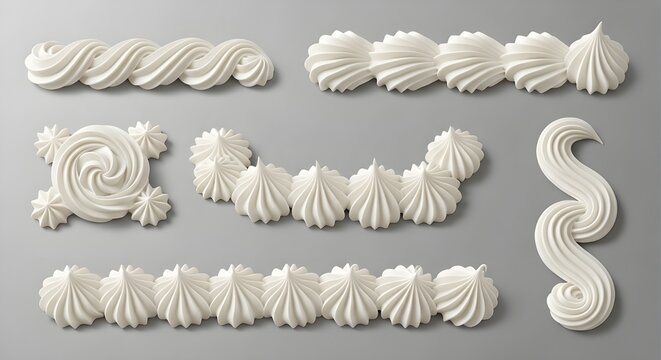 Variety of White Cream Swirls and Decorations | Icing Elements for Cake Decorating, Dessert Presentation and Pastry Designs