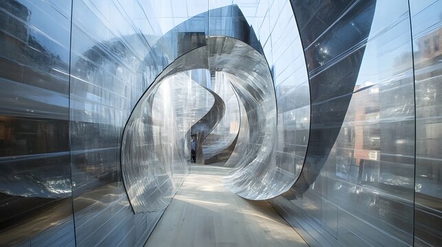 Vibrant rainbow spiral ribbon structure ai art
