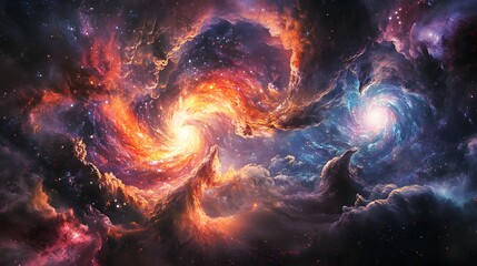 Spectacular spiral galaxy with vibrant nebula and stars in deep space