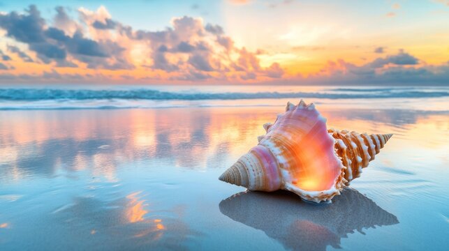 Image of large empty ocean snail shell on a white background. Undersea Animals. Sea shells.