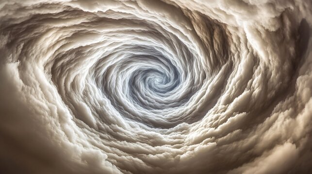 Abstract swirling cloudscape vortex, dreamy atmospheric spiral cloud formation