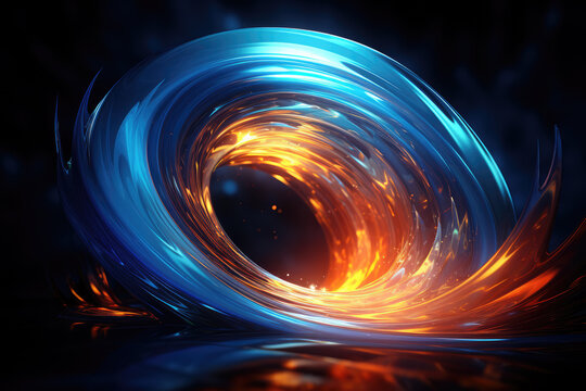 Swirling cosmic vortex drawing luminous ring into deep space void