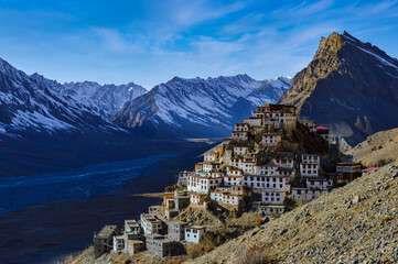 Breath-taking beauty ancient Tibetan Key Monastery, Spiti valley, Spiti river, Himachal Pradesh, Lahaul and Spiti district, India