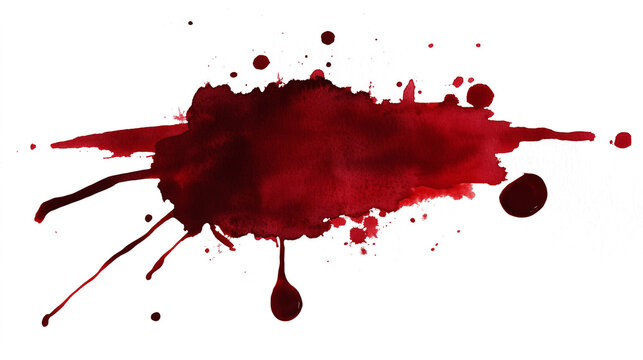 Red paint abstract watercolor blood splat isolated on transparent background