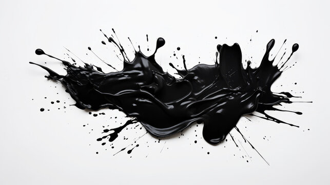 Dynamic black paint splatter on white background for artistic design