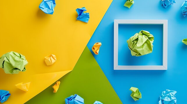 Two color paper with light violet and yellow Overlap on the floor And split half of the image. background