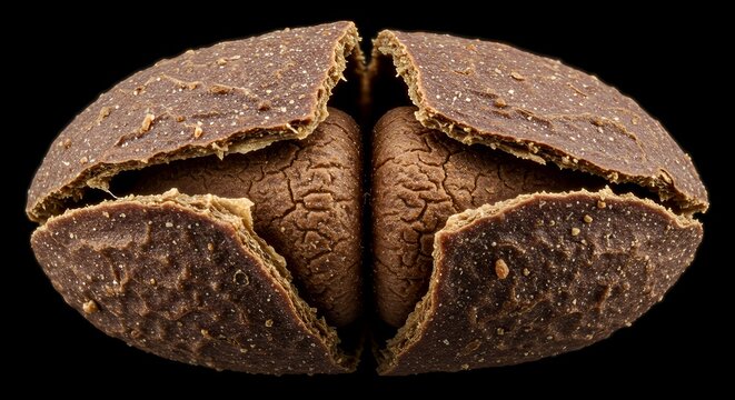 A tamarind pod split open showing seeds photorealistic realism white background with clean shadows