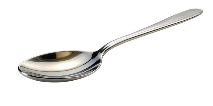 Set of dessert cutlery spoon fork and knife stainless steel isolated on white background