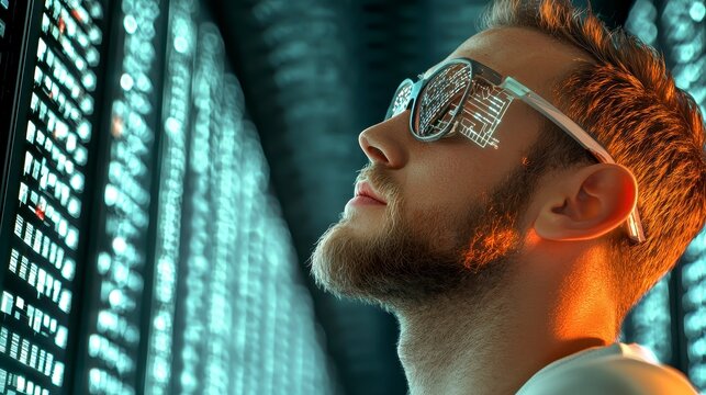 Innovative technology exploration data center digital art futuristic environment profile view conceptual visualization