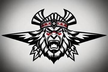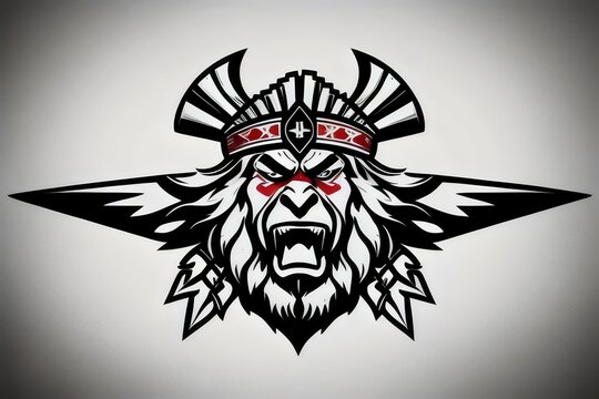 a flat vector style logo depicting An angry aboriginal chief  for a sports team,  rage, native, indian, indigenous, warrior