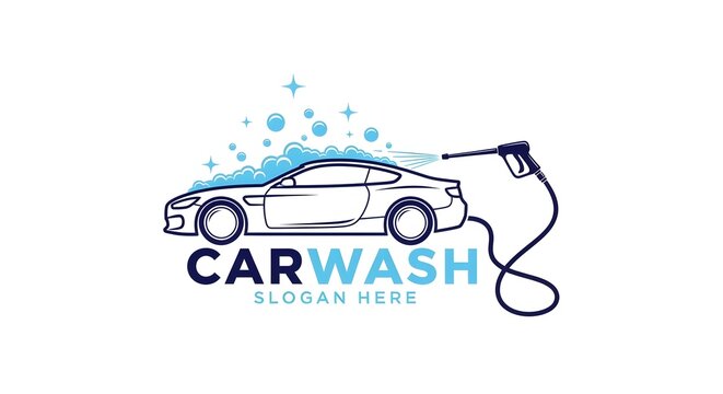 Modern sports car being cleaned with a high pressure water jet at a car wash service