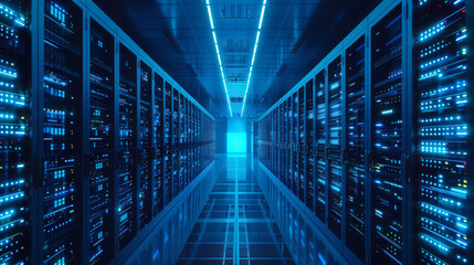 A sprawling data center, housing racks upon racks of server stacks, storing vast amounts of scientific information