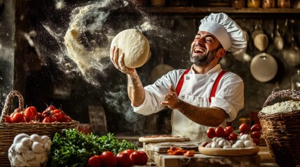 Making homemade pizza from scratch, kneading dough and spreading sauce with excitement.