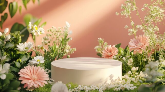 Chamomile Daisies on a Pink Background: A Minimalist Summer Floral Flat Lay. Capture the essence of a bright and cheerful season with this creative summer or spring backdrop.