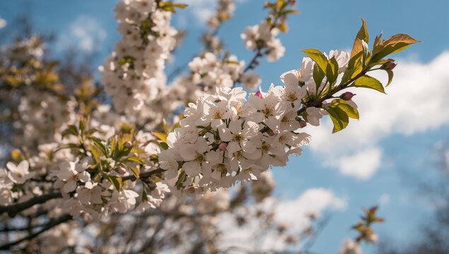Tree blossoming in early spring, signaling the arrival of the season, Spring Equinox