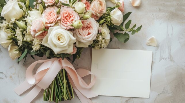 greeting card layout. small wedding bouquet of flowers and space for text