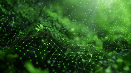 A green field with a network of lines and dots