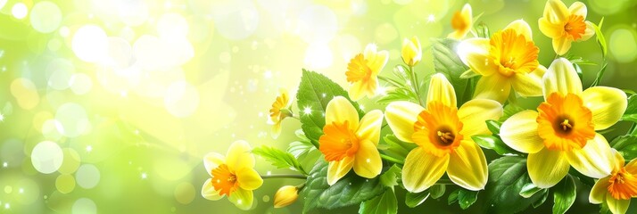 Vivid red and yellow tulip field blooming under spring sunlight for floral backgrounds