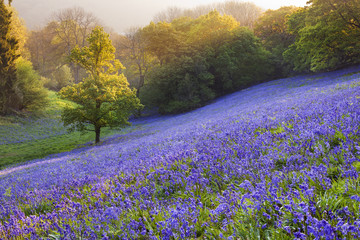 Bluebells (Hyacinthoides non-scripta) growing in a woodland field, Minterne Magna, Dorset, England, UK
