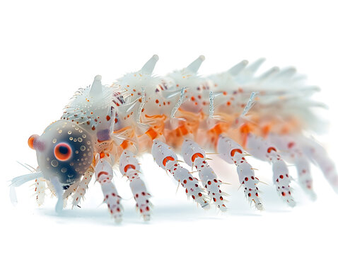 brightly colored Antarctic springtails caterpillar isolated on white background