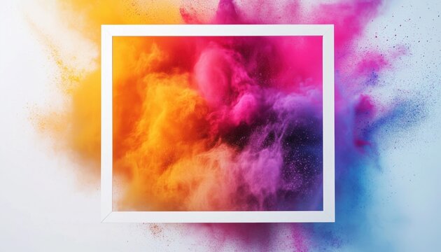 Holi Indian Festival: A Spring Celebration Of Color, Club Parties, And Water Abstract Art In A White Frame. Ideal For Creative Flyers!