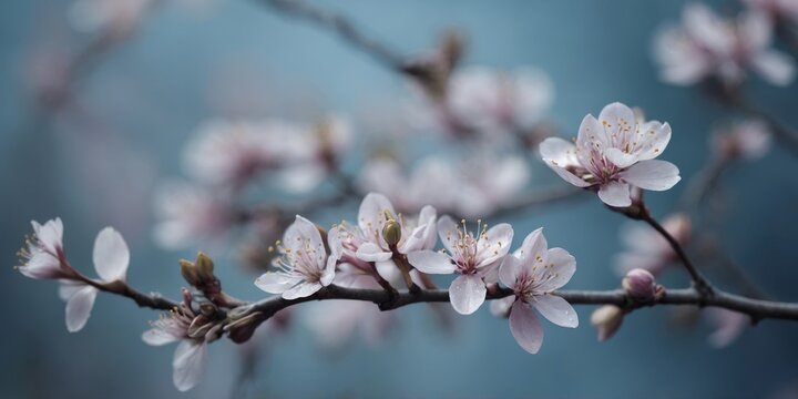 Blooming cherry blossoms on twigs during springtime