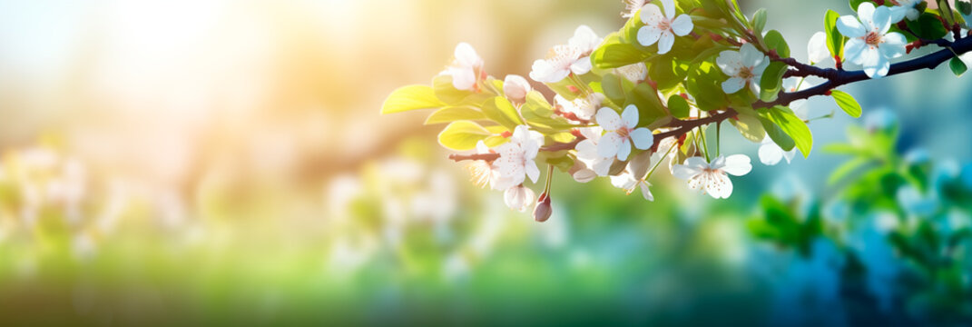 White cherry blossoms blooming on sunny spring day