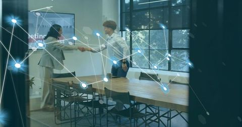 Digital network overlay on business meeting collaboration