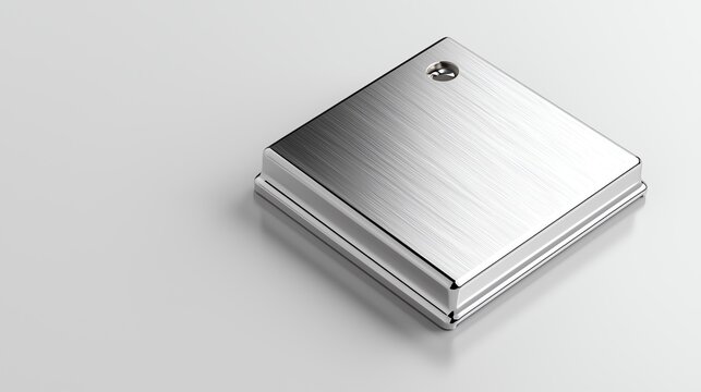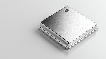 A metallic silver square button
