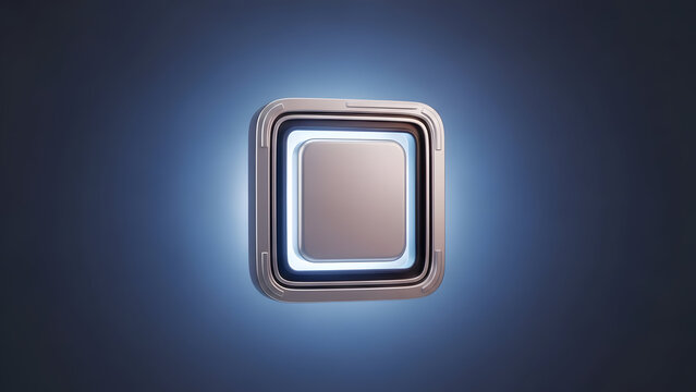 Glowing Silver Square Button on Dark Background.