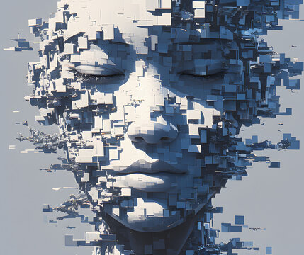 Minimalist White 3D Pixel Art Geometric Pattern Background with Texture and Copy Space