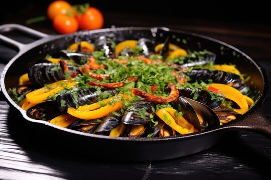 Squid ink black pasta with seafood