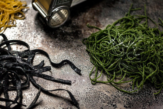 Raw Spinach and Squid Ink Pastas
