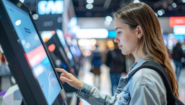 People Using Self Checkout and Digital Kiosk in Modern Store