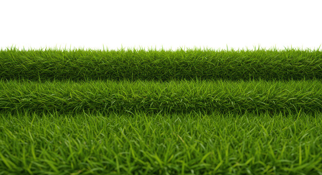 Four distinct horizontal layers of lush green grass, emerald to lime, on a transparent background with soft high-key studio light. Concept of sustainable growth and organic progress