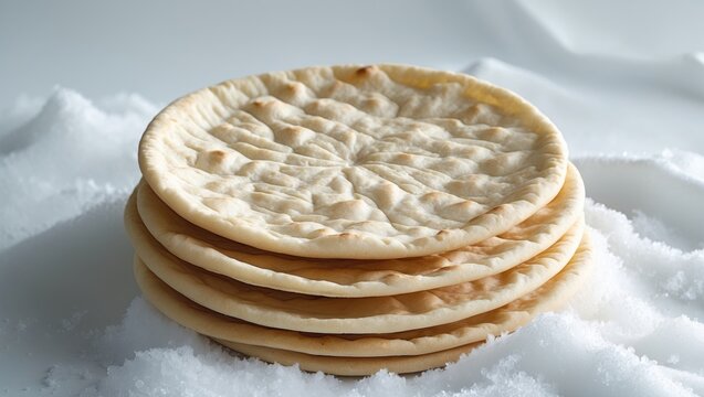 White background with a collection of pita breads stacked