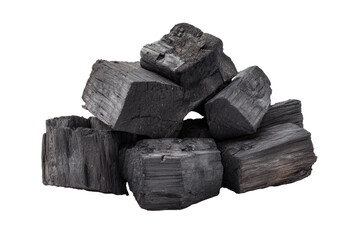 The Charcoal Briquettes Piled on a White Background with Ash Dust and Texture